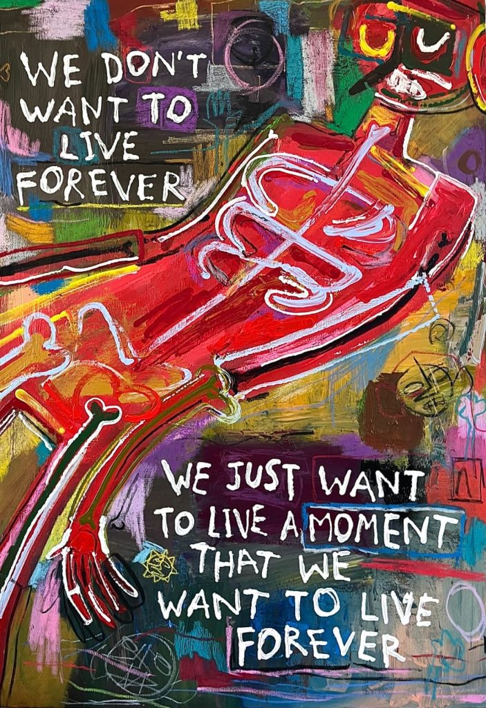 Dünyanın gailesinden, şehirlerin kalabalığından, insanların ve düşünce yumaklarının baskısından sıyrıldığımız; kendimizle, zihnimizle baş başa kaldığımız an, sanatsal bir deneyim anından başkası olamazdı. İşte bu noktada Güventürk yazı ve resmi bir araya getirdiği üslubunda; izleyiciye bazen bir sorgulama, bazen bir gülümsetme bazen de kendini bulma-kaybetme deneyimi sunma arzusuyla yola çıkıyor. Schopenhauer’in bu sözü tam da bizi sergi ismine sürüklüyor ‘İnsan arzu ettiği gibi yaşayabilir ama arzu ettiği gibi arzu edemez.’